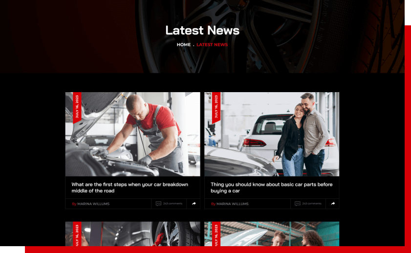We have provided multiple layouts for car servicing blogs to share knowledge with various clients & users. For blog we provide multiple layout options.